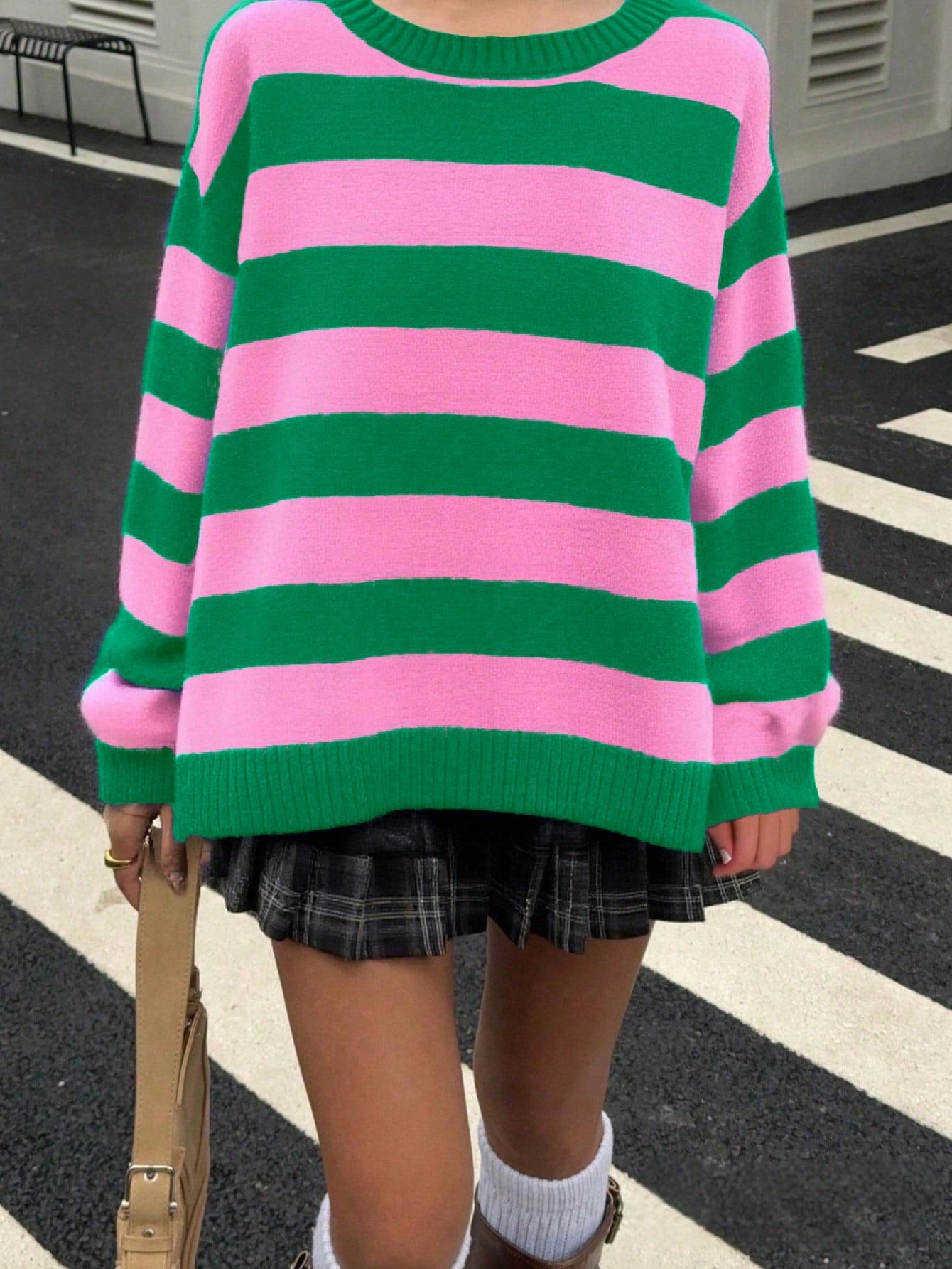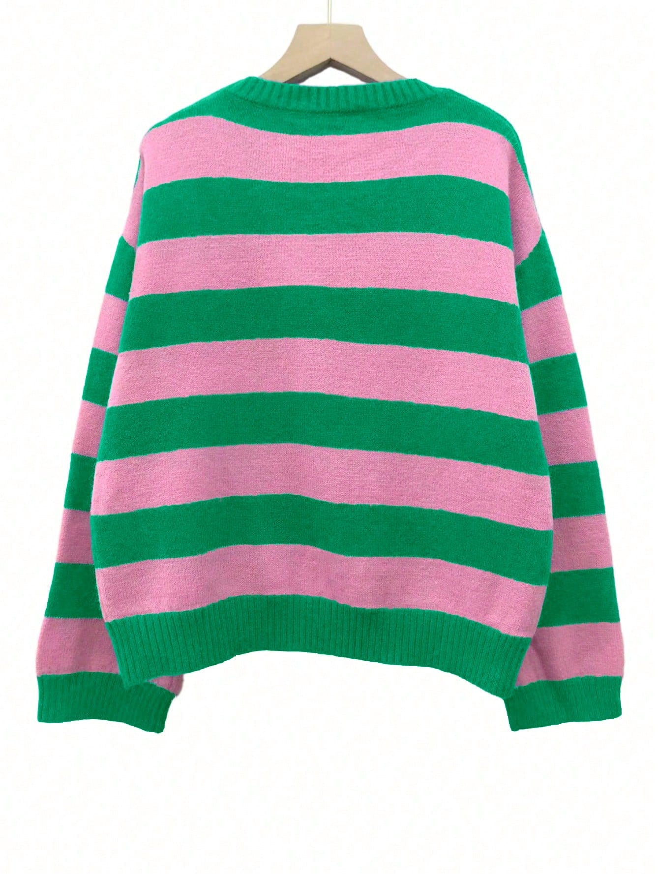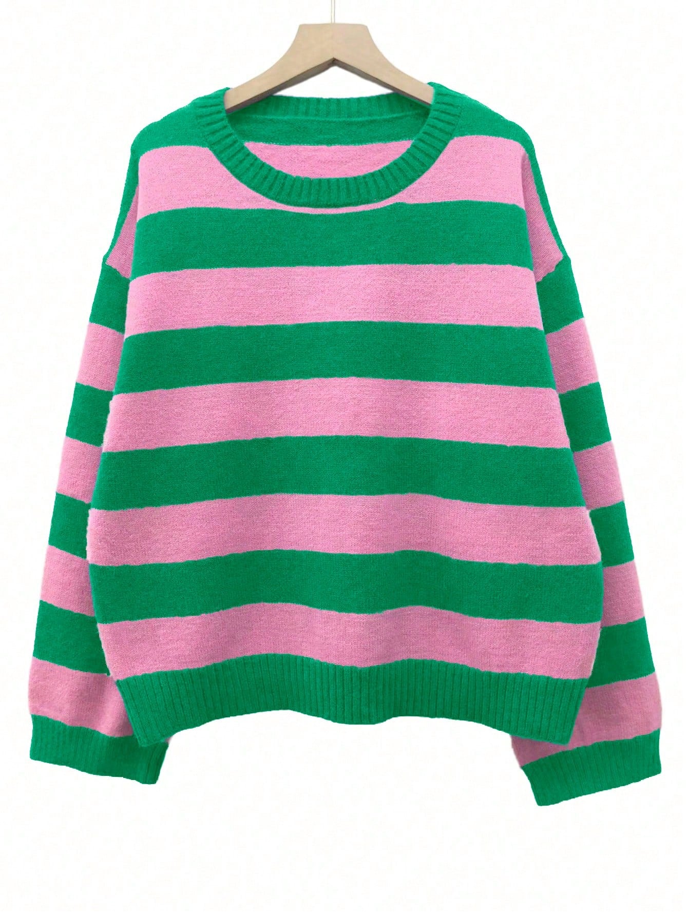 Bold Stripe Knit Pullover – Green & Pink