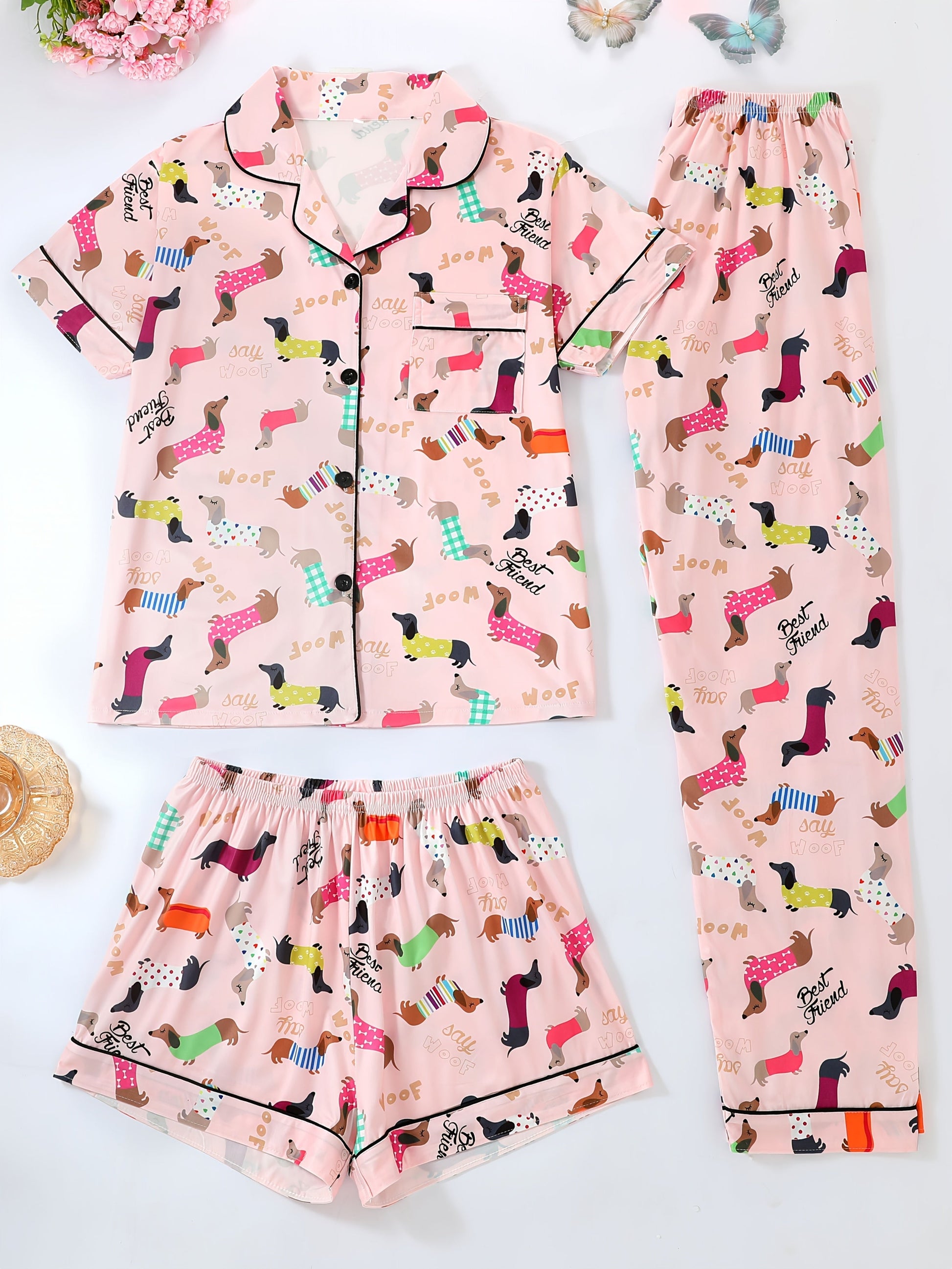Puppy Love Satin Nightwear Set (3-Piece Combo)