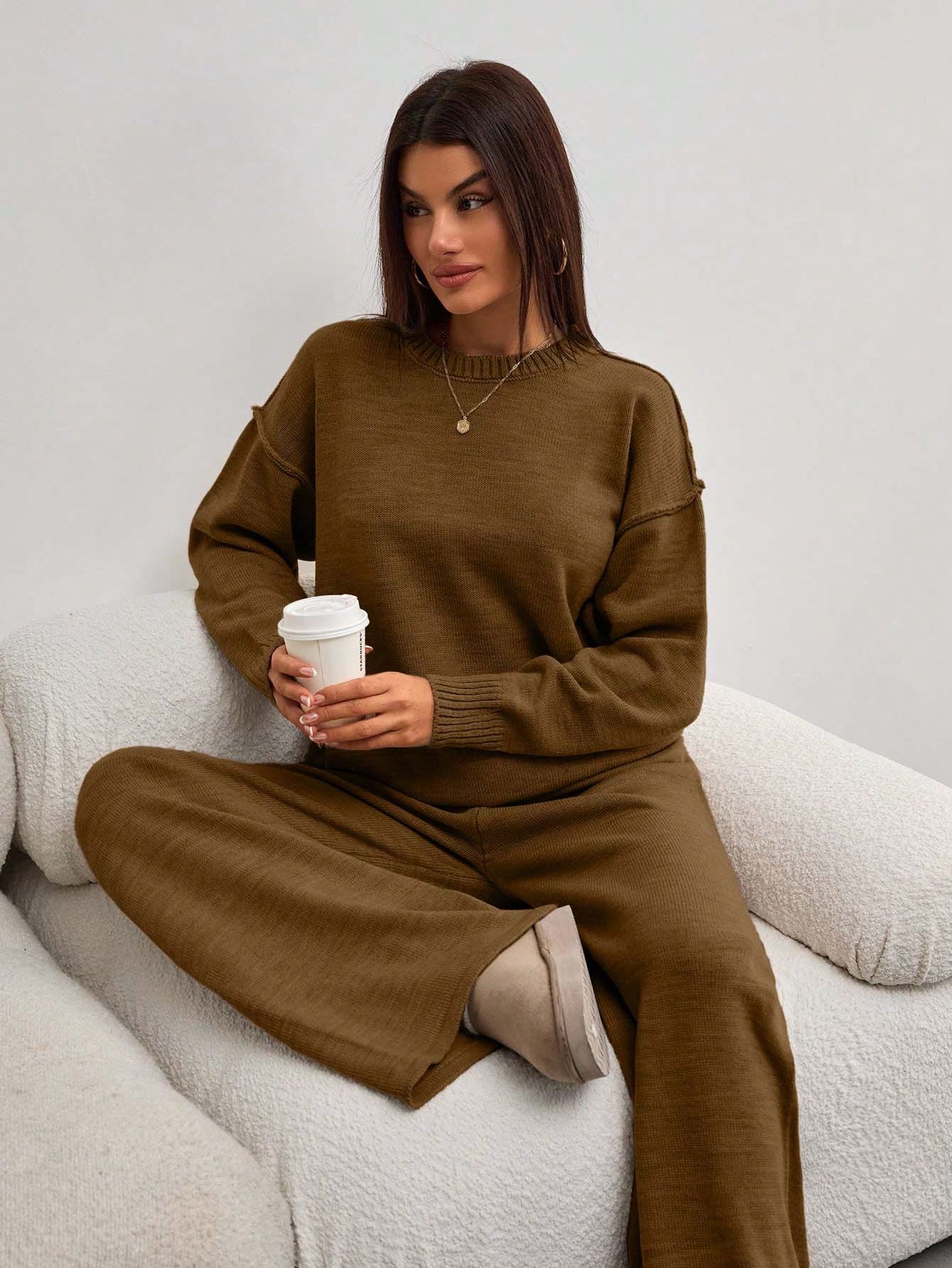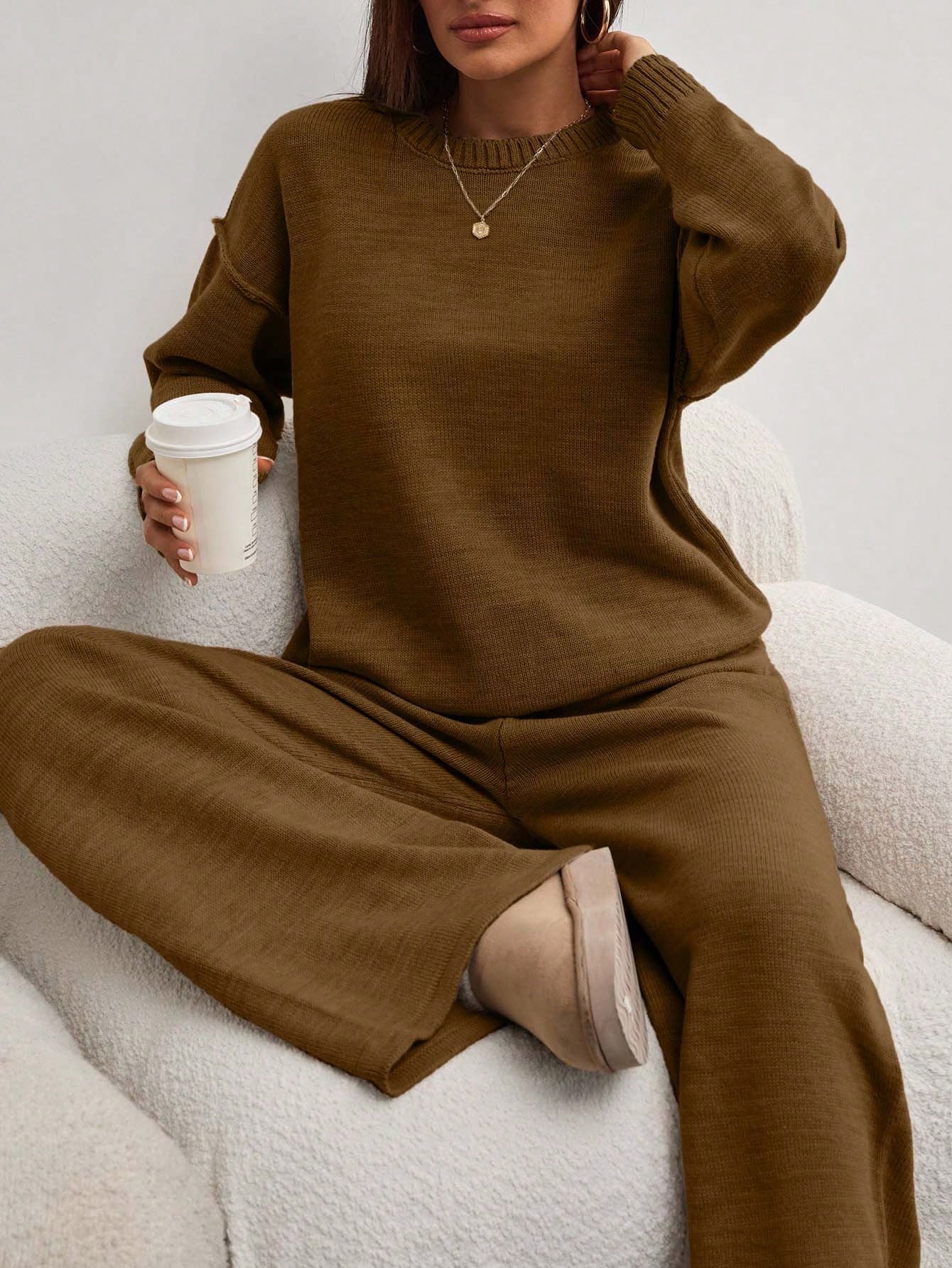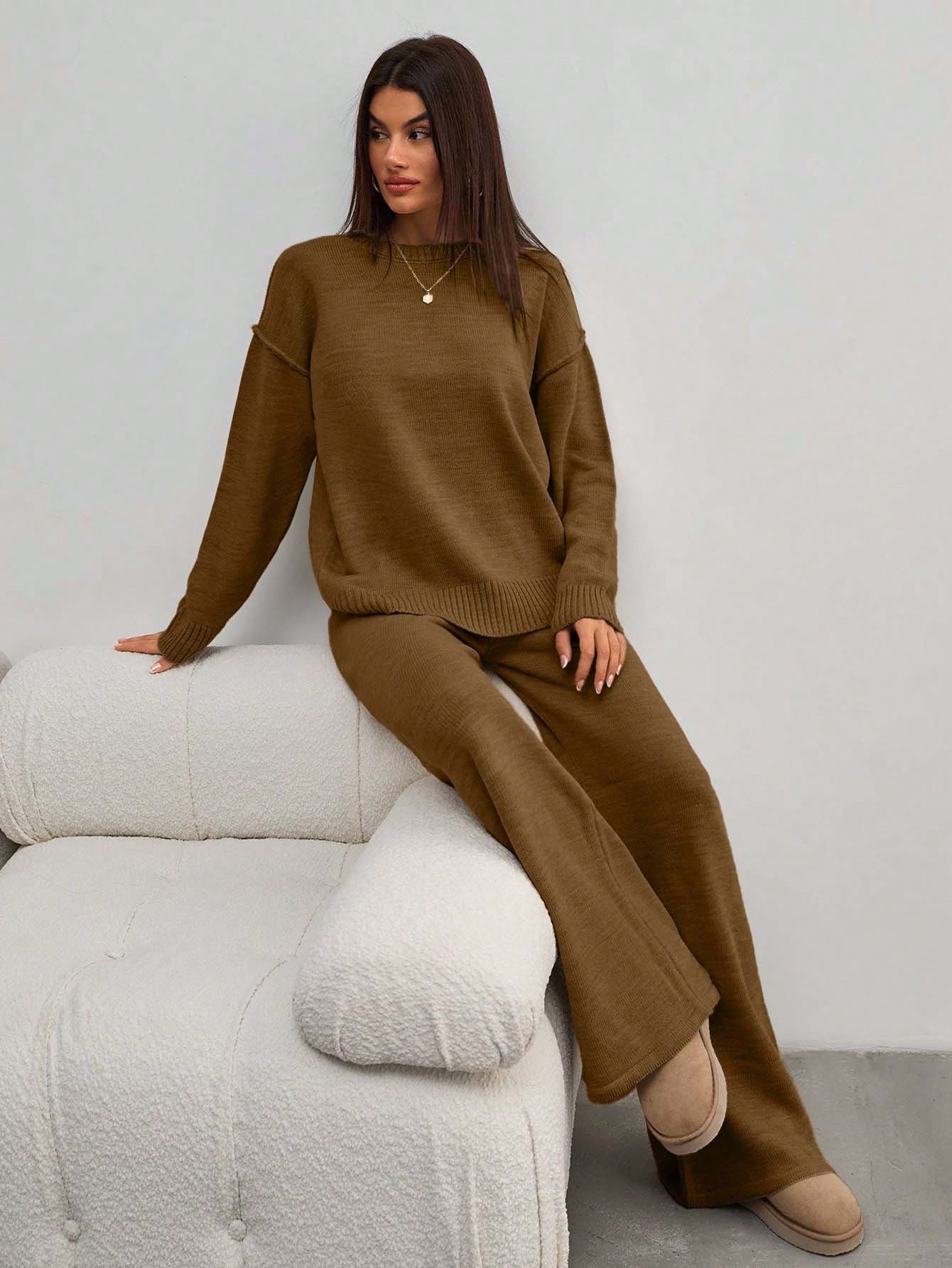 Relaxed Crewneck Knit Lounge Set – Olive Brown