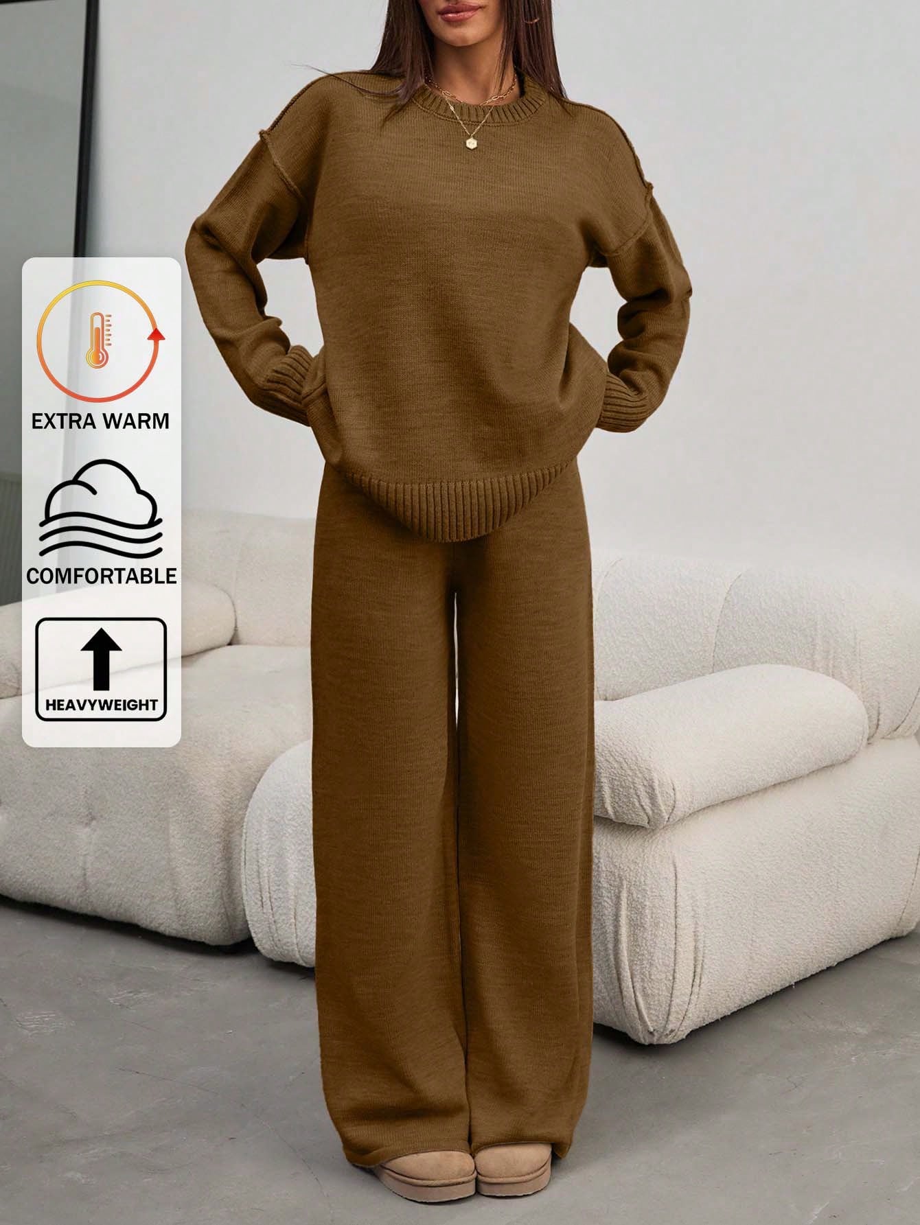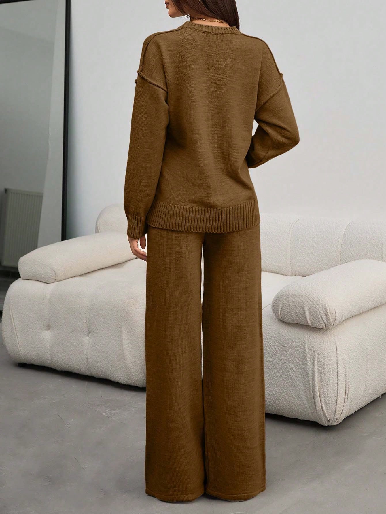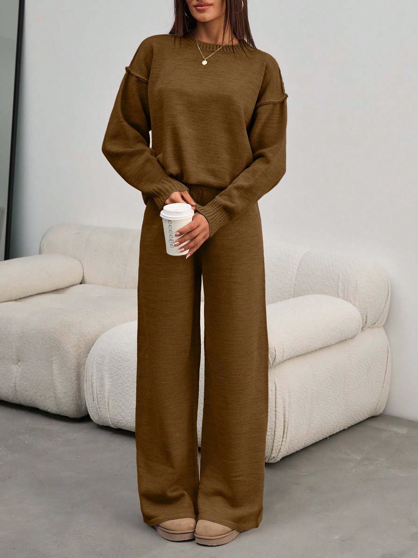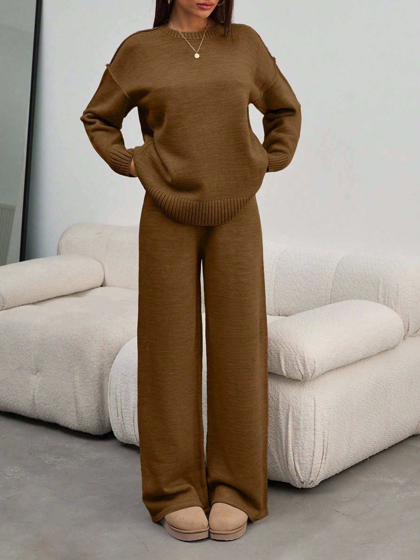 Relaxed Crewneck Knit Lounge Set – Olive Brown
